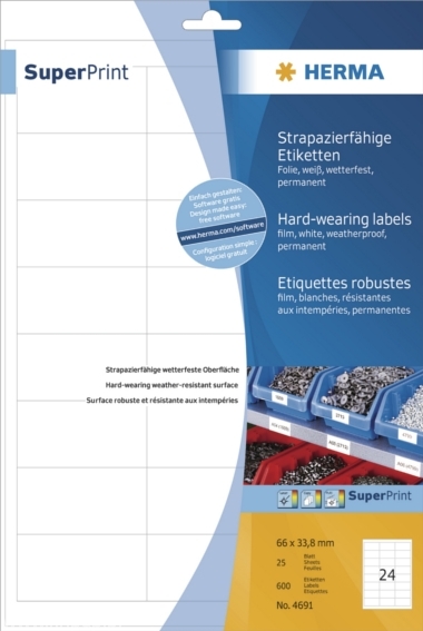 Folia Superprint Herma odporna na warunki atmosferyczne, promieniowanie UV, oleje i smar, brud i wodę.