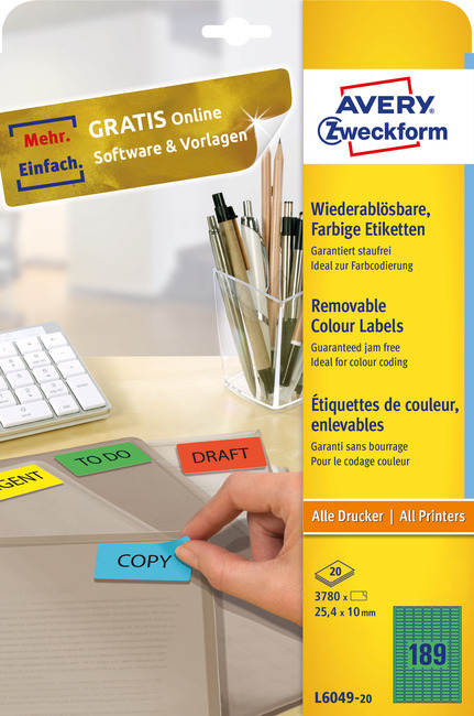 Etykieta kolorowa L6036 - 20 Avery Zweckform, 25,4 x 10 mm, czerwone 3780 szt.