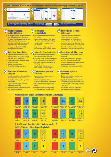 Etykieta kolorowa Avery Zweckform L4793 - 20, 38,1 x 21,2 mm, żółte, 1300 szt.